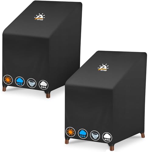 Zettum överdrag för stolar 2 stycke, stapelbara stolsöverdrag Vattentätt och vintertätt, 600D Oxford PU Trädgårdsstolar Skyddsöverdrag, Anti-UV-överdrag för trädgårdsmöbler (71x91x80/120 CM)
