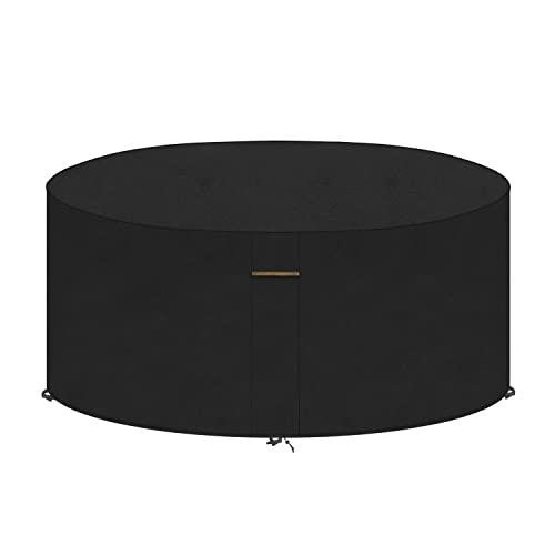 Kovshuiwe Vattentäta trädgårdsmöbler överdrag Ø 250 x 104 cm, slitstarkt 420D oxfordtyg trädgårdsbordsskydd med stor luftventil vindtätt anti-UV utomhusbord och stolar, uteplatsskydd rund svart