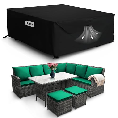 KEPLIN Vattentätt utomhus trädgårdsmöbler överdrag - UV, slitage, blekningsbeständigt, 600D Oxford-tyg, PVC-beläggning, luftventil, monteringsremmar och förvaringsväska ingår för bord och stolar (250