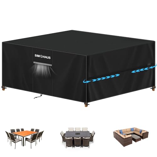 SIMPHAUS Överdrag för trädgårdsmöbler, XXL-överdrag för trädgårdsbord, skyddsöverdrag för bord och stolar, presenning för trädgårdsmöbler, överdrag med ventilationsöppningar, vattentätt 420D