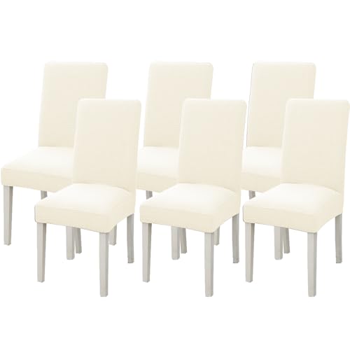 Taeku Stolskydd, universellt avtagbart stretchstolsöverdrag, modernt jacquardskydd, skydd, matsal, stolar, skydd, dekoration, dra-på-överdrag för bankett, dekoration, bröllop, fester (beige 6 st)