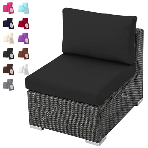 Överdrag till soffdynor & stolar – Ljusblått, vitt, svart, grönt, blått – Passform för 1 2 3 sits rottingmöbler inomhus/utomhus(Black,S (60-65cm/24-25.5in))