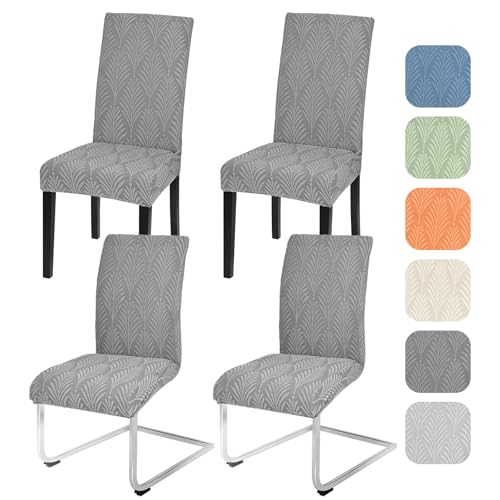 Alishomtll Stretch stolsöverdrag set om 4/6 st stolsöverdrag universellt för svängstolar blad jacquard matstolar överdrag avtagbara stolar skydd för kök bankett bröllopsfest (grå, 4 st)
