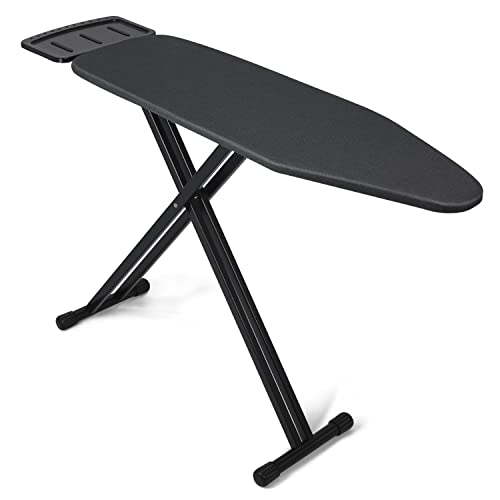 Duwee 34 x 109 cm Strykbräda med stöd för ångstrykjärn, hopfällbar strykbräda, justerbar höjd, värmetåligt överdrag, tjock filtdyna, starka ben, svart