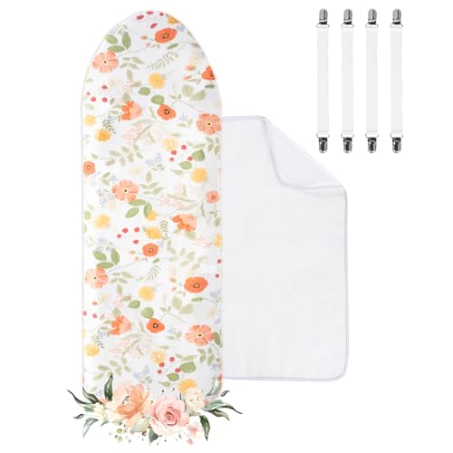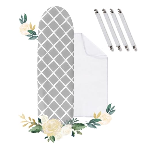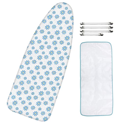 Extra brett överdrag till strykbräda och dyna med tjock vaddering och elastisk kant 45 cm x 124 cm strykbrädsöverdrag, 4 fästelement och 1 skyddande skorch nätduk