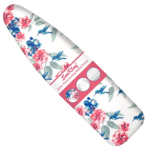 SUNKLOOF Extra tjockt överdrag till strykbräda och dyna, motstår brännskador och fläckar, 15 x 54 reflekterande silikon strykbrädesöverdrag, elastiska kanter, 4 fästanordningar, stor skyddande skorch