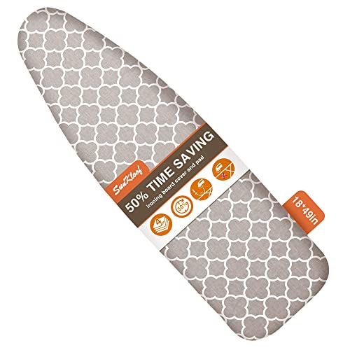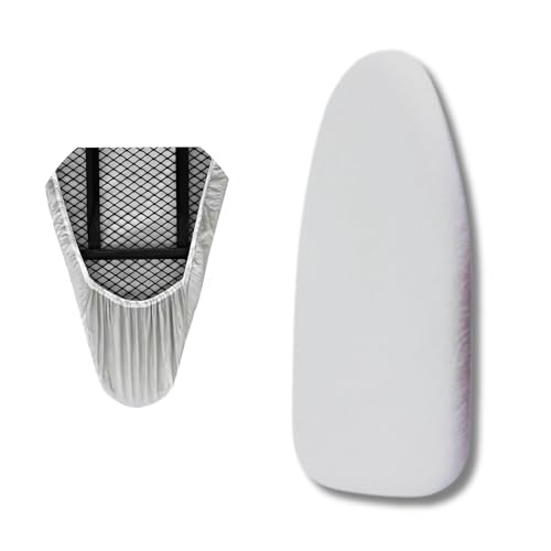 SUNKLOOF Extra brett överdrag till strykbräda och dyna, 18 x 49 reflekterande silikon strykbrädesöverdrag, motstår brännskador och fläckar, 4 fästen, elastiska kanter, stor skyddande skorgsnätduk, 48
