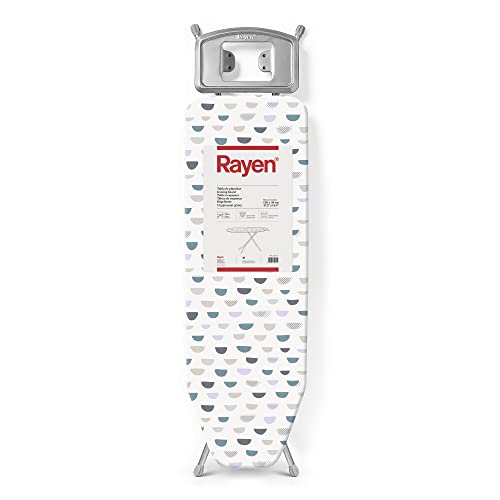 Rayen Tabla de planchar medium strykbräda | Premiumserie | Justerbar höjd | halkfritt gummiben överdrag | Mått: 120 x 40 cm, Expanderad metall, vit och tryckt fodral, 120,5 x 40 cm