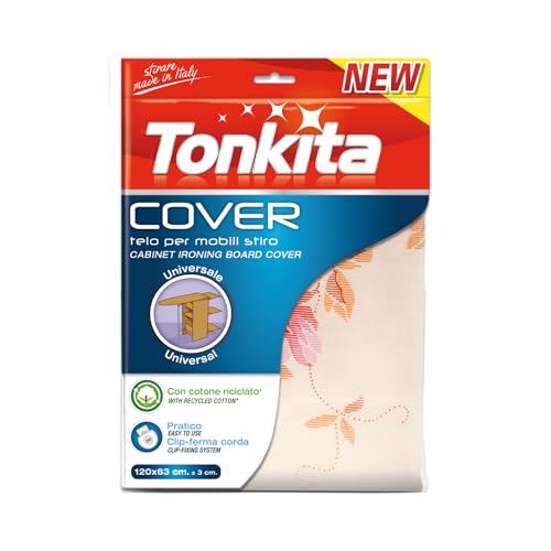 Tonkita | Överdrag för strykbräda, universell, 120 x 63 cm återvunnen bomull och svamp, med klämma på rep, mjukt och praktiskt, för brädor upp till 112 x 55 cm - tillverkad i Italien