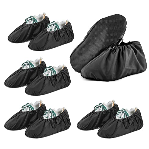 TSHAOUN 4 par återanvändbara överdragsskor med halkfri sula, vattentäta Oxford-tygskoskydd, skoskydd för hushållsmatta golvskydd dammtäta inomhus bagageskydd maskintvättbar, Svart, Large