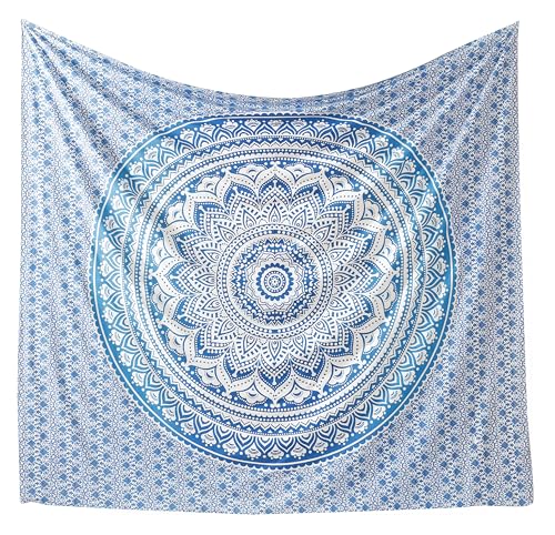 Populära hantverk gobeläng vägghängande hippie mandala bohemisk hippie intrikade indiska gobelänger överkast 230 cm x 270 cm (90 x 108 tum) blå ombre