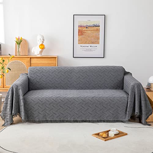 LHGOGO Soffa, överkast, stort sofföverkast, 2-sitsig jacquardväv, mångsidig dekorativ överkast för soffa och överkast – 180 x 230 cm, grå