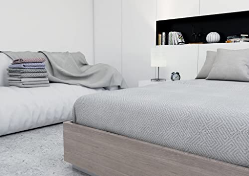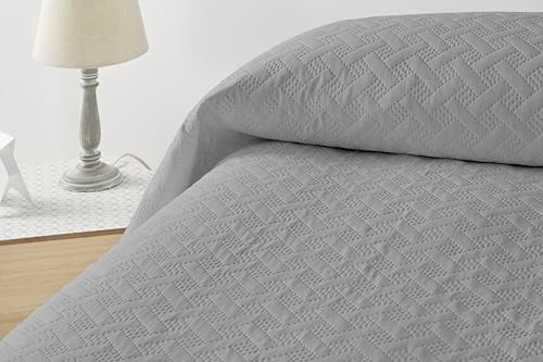Todocama - Multifunktionellt överkast, Foulard-filt, Pläd för säng, sängöverdrag, överdrag, filt, tillverkad i Spanien, våfflor (230 x 260 cm och ljusgrå).