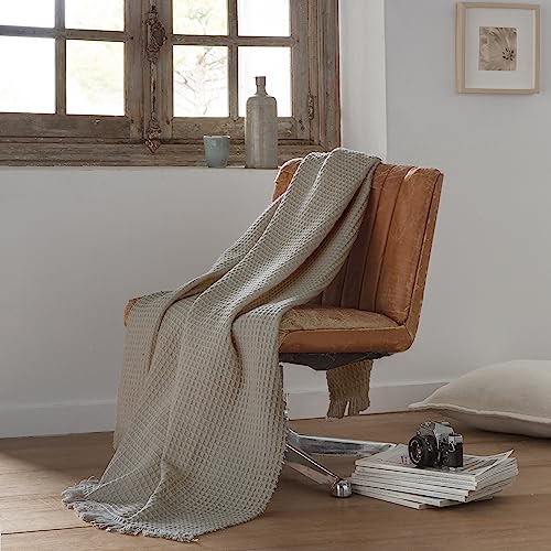 VIALMAN Plaid Vår Färg Taupe | Multipurpose överkast 230 x 260 cm | Plaid Sofa. Foulard filt | Sängöverdrag | Foulard för soffa