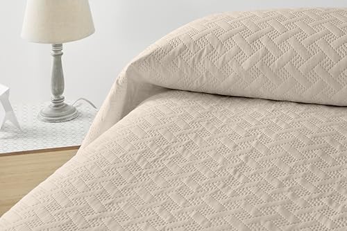 Todocama – Tunt bouto-överkast med rombmönster, för vår, sommar, höst och vinter. 100% extra mjukt mikrofiber. Sängöverkast, multifunktionssäng, säng 120/135–230 x 260 cm, beige