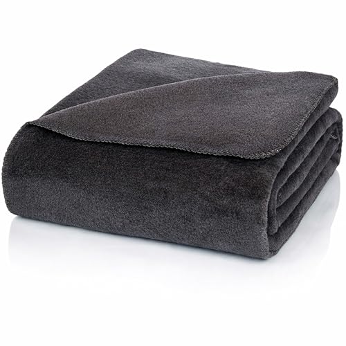 Glart gosig filt, fjädrar, grå, XL, 150 x 200 cm, mjuk och varm, som sofffilt, filt, överkast och sofföverkast. Plysch utan ärmar För barn och soffa