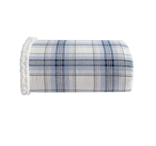 Eddie Bauer – prydnadsfilt, bomullsflanell heminredning, vändbara sherpa sängkläder (Edgewood rutig blå, överkast)