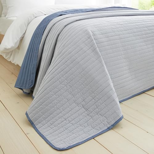 Catherine Lansfield randig quiltad vändbar 220 x 230 cm överkast blå