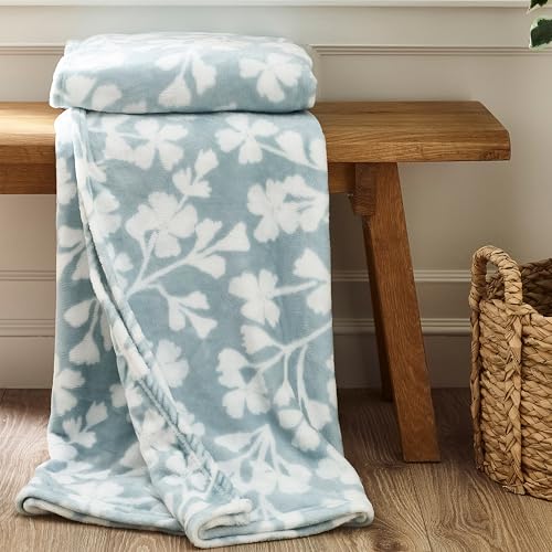 Catherine Lansfield Brooke blommig mysig fleece 200 x 240 cm filt överkast anka ägg blå