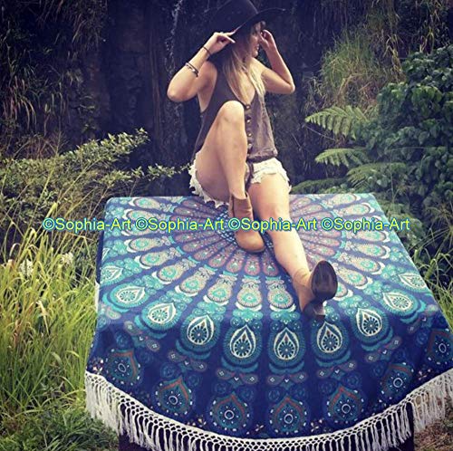 Sophia-Art Mandala gobeläng bomull roundie lakan yoga bordsduk gobeläng indisk rund hippy hängande rund strand rund boho vägg överkast (blå, 112 cm)