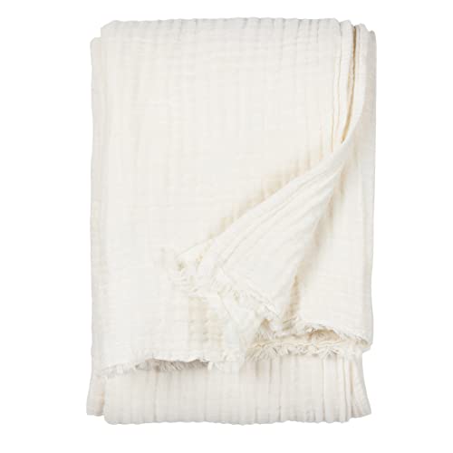 EMME prydnadsfilt 100 % bomull, muslinfilt, dubbel storlek, förtvättad mjuk varm andningsbar lätt filt för stolar, soffa, överkast, sofföverkast för alla årstider (vit, 140 x 190 cm)