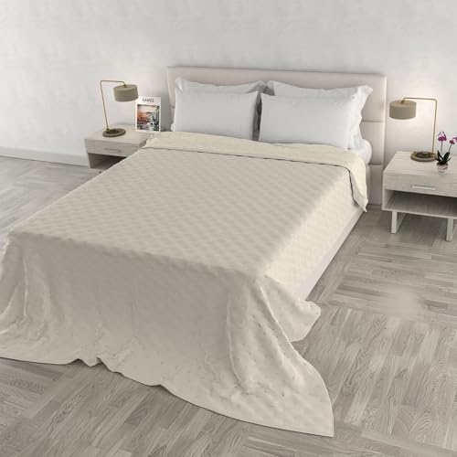 PENSIERI DELICATI Överkast för dubbelsäng, 260 x 280 cm, enkelhandduk i 100% bomull, perfekt som heminredning, överkast för 2 rutor, 100% tillverkad i Italien