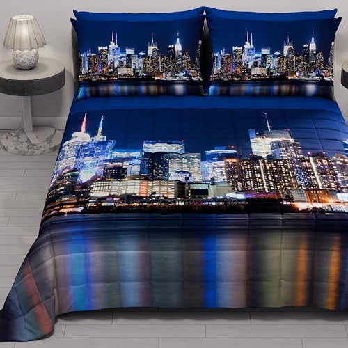 PETTI Artigiani Italiani - Sommar enkelsäng överkast 170 x 260 cm 100 g/m² dubbelsidigt överkast för enkelsäng för vår, lätt täcke, New York, 100% tillverkad i Italien