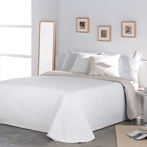 Överkast - 140X240 cm - Vändbart sandfärgat och vitt - Överkast för enkelsäng