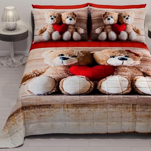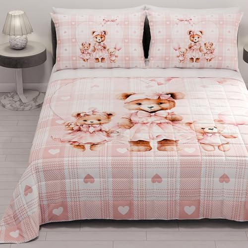 PETTI Artigiani Italiani - Sommar enkelsäng överkast, 170 x 260 cm, 100 g/m², dubbelsidigt täcke, för enkelsäng, vår, lätt täcke, rosa teddy, 100% tillverkad i Italien