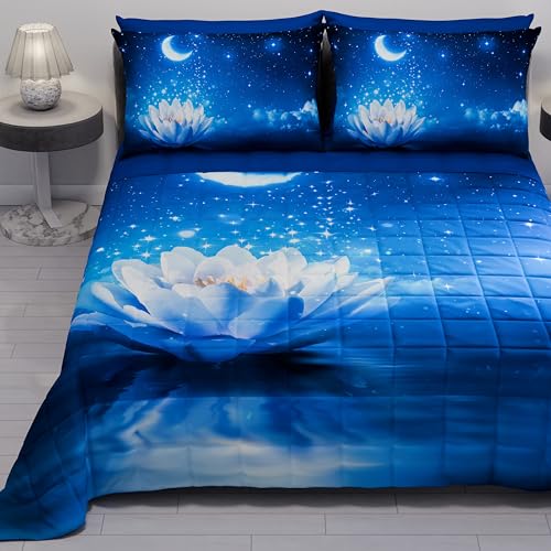 WOLTU® överkast sängöverkast 240 x 260 cm, täcke lapptäcke vänddesign, sängöverkast av mikrofiber, överkast enkelsäng fodrad och quiltad, blå + vit