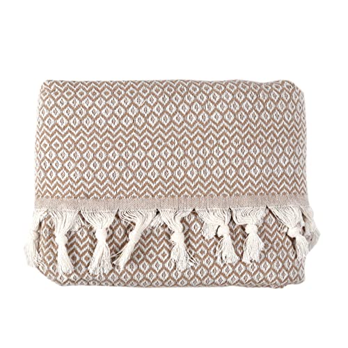 Tuiste Enkelsäng överkast beige sandkräm, bomull, sofföverkast, sofffilt, gosig TV-filt, sofffilt, fåtöljfilt, vändbar filt, överkast, sofföverdrag, sommarfilt, 150 x 200 cm