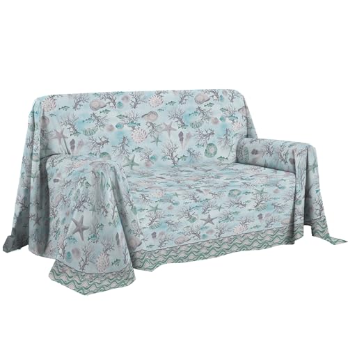 PENSIERI DELICATI Sofföverkast, 180 x 290 cm, tillverkad i Italien, överkast av 100% ren bomull, maritim grön, perfekt som överkast eller överkast för sommaren (enkelsäng)