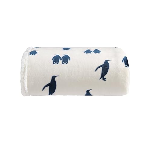 Eddie Bauer Ultra-plysch kollektion överkast filt vändbart sherpa fleeceskydd, mjukt och mysigt, perfekt för säng eller soffa, kejsare pingvin