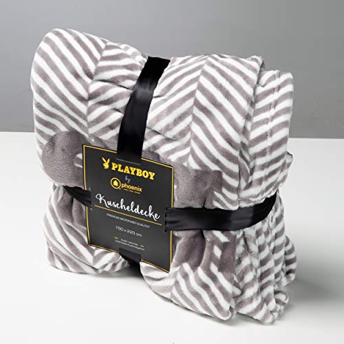 PLAYBOY Gosig filt tryckt, grå, gosig, mjuk filt, tryckt med kanin och text, av polyester, kolter, överkast, retrodesign, klubbstil, filt, vardagsrum, lounge