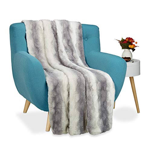Relaxdays Fuskpälsfilt, XXL överkast, fluffig filt, B x L app. 150 x 200 cm, vit-grå