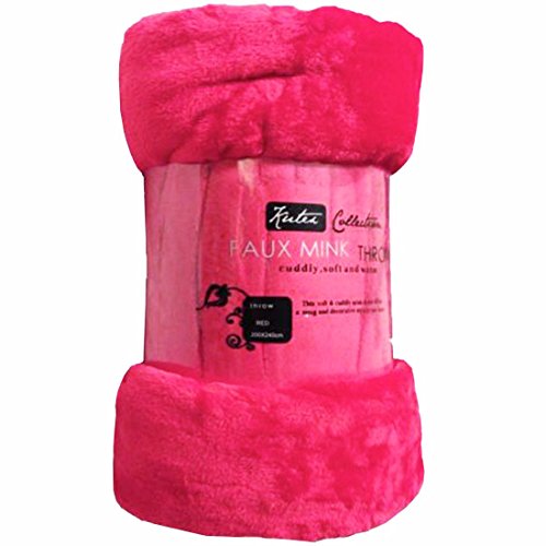 Laura Secret Fleece fuskpäls rulle mink THROW överkast/säng filt vackra färger (enkel, Fucshia rosa)