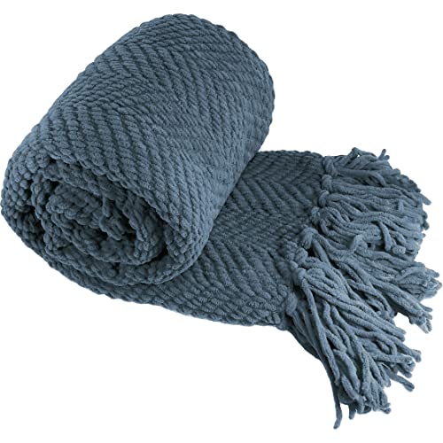 Hem mjuka saker stickad tweed överkast sofföverdrag filt, 50 x 60, blå vinge blågrön