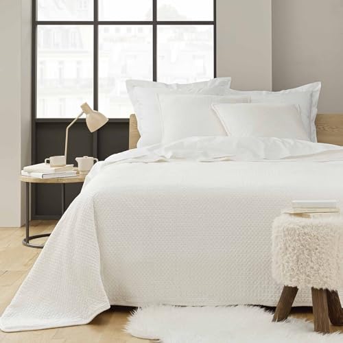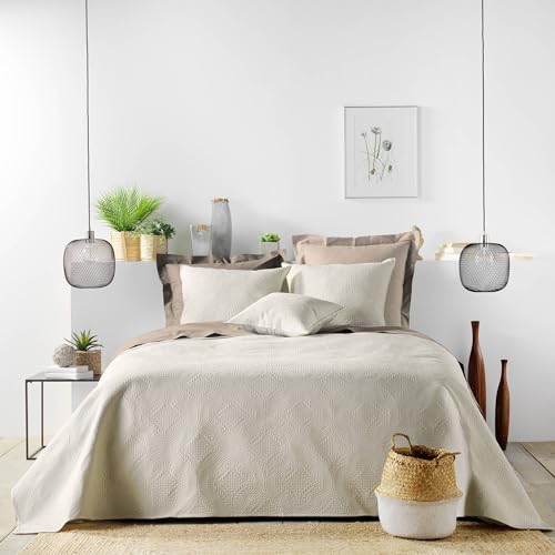 douceur d'intérieur, Quiltat överkast (220 x 240 cm) och 2 örngott (60 x 60 cm) naturlig romersk, enfärgad mikrofiber