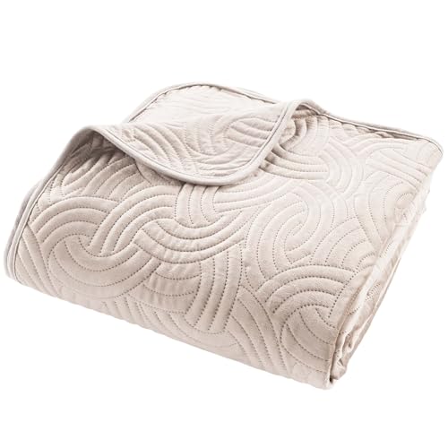 Eurofirany Ariel Hot Press Quiltat Överkast I Mjuk Sammet Med Fiskfjällsmotiv, 220X240 Cm, Färg: Beige