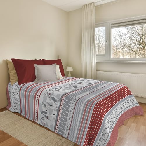 PENSIERI DELICATI Sofföverkast, 180 x 290 cm, tillverkad i Italien, överkast av 100% ren bomull, motiv, chalet, röd, perfekt som överkast eller överkast för sommaren (enkelsäng)