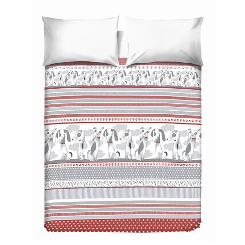 PENSIERI DELICATI Överkast 220 x 280 cm, enkel 100% bomull pique-presenning, perfekt som dekorduk, filt spara 1 fyrkantig och halv säng, mönster röd luftballong, 100% tillverkad i Italien