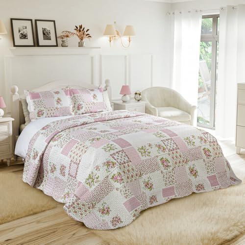 Emma Barclay Cotswold – quiltat lapptäcke överkast i rosa – dubbel