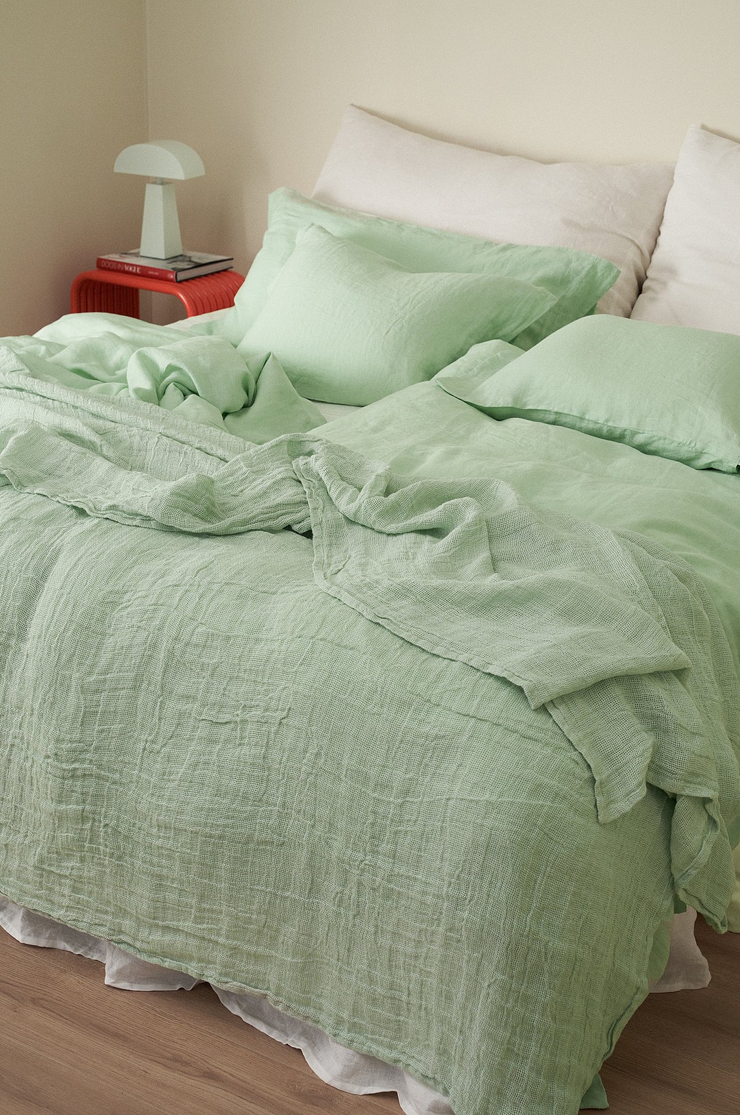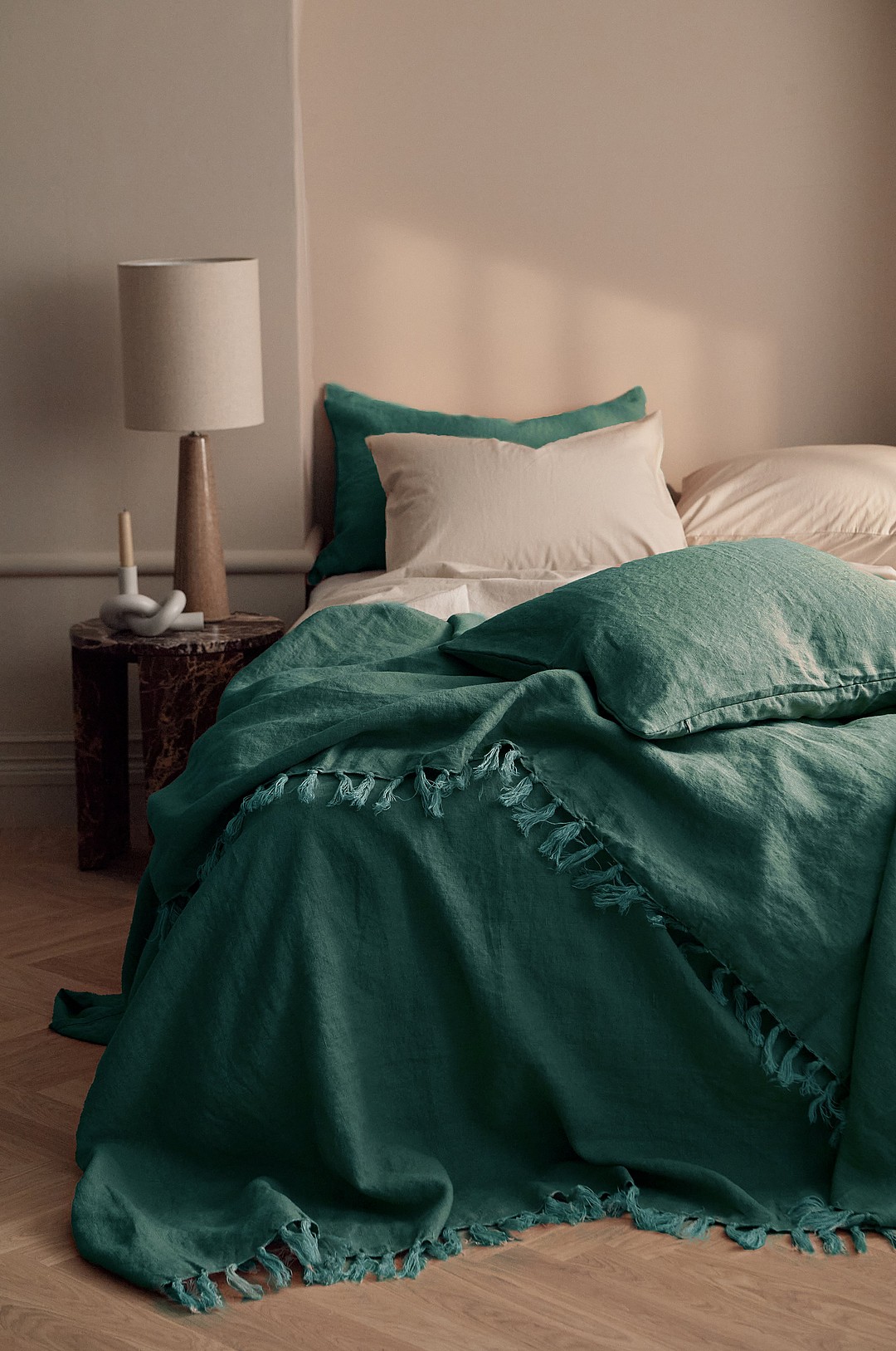 Ellos Home - Överkast Kiyoko i tvättat lin - Grön