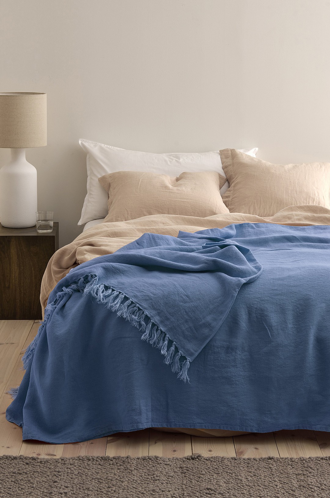Ellos Home - Överkast Kiyoko i tvättat lin - Blå