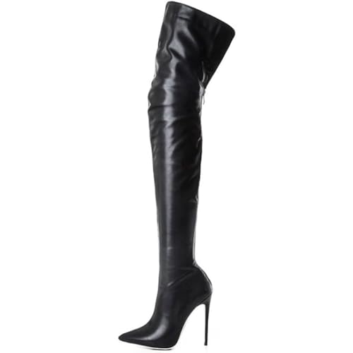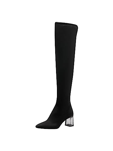 SPONYBORTY 11 cm Overknee stövlar sexiga högklackade lårhöga stövlar stilettskor höststövlar kvinnor stora skor damer/svart/41 EU