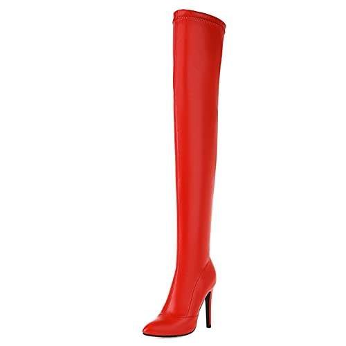 Mo Joc Sexiga damstiletto overknee stövlar med halv dragkedja, röd, 42 EU