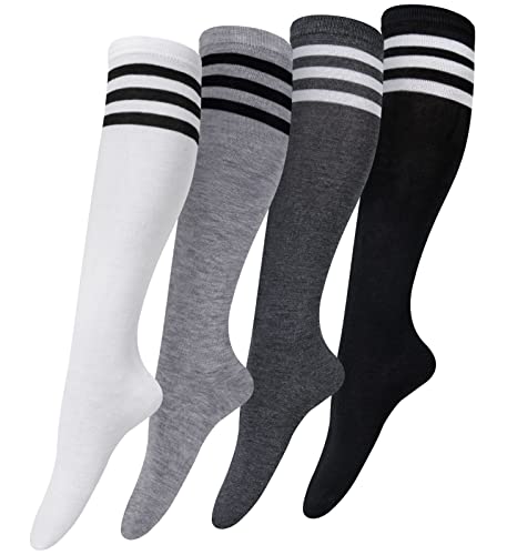 Justay Comf 4 Par Overknee Strumpor Dam Knästrumpor Knähöga Strumpor Långa Volleybollstrumpor Sportstrumpor Damstrumpor En Storlek, Remsa, One Size
