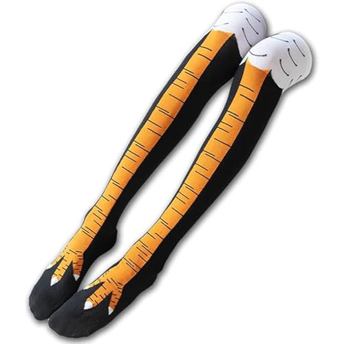 Diffaxy kycklingfötter, roliga knästrumpor med 3D-tecknade kycklingben, avslappnade Overknee strumpor, Inte mer än knä, one size