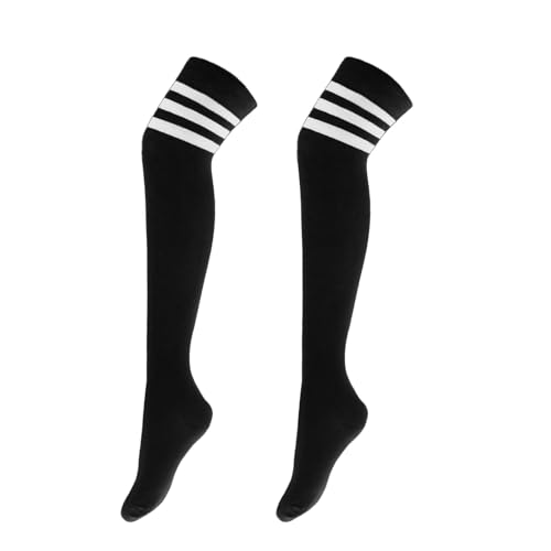 Werownsgso Dam knästrumpor overknee strumpor randiga strumpor fe mjuka sportstrumpor knästrumpor för cosplay sport, Svart (vit remsa), one size