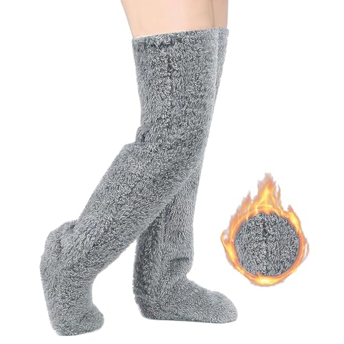 Plysch Overknee strumpor fluffiga, långa gosiga strumpor dam, luddiga strumpor, knästrumpor varma, strumpor ben varmare långa benvärmare, kvinnor vinterstrumpor för sömn hemma, GRÅ, M